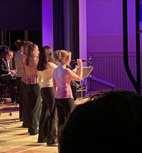 Musikalisch bot der Abend eine große Bandbreite: Von Live-Musik-Beiträgen wie „Tico Tico“ (aufgeführt von Johanna Zimmermann, Noa Hartmann und Friedemann Sobanski), „Sway“ (gesungen von Friedemann Sobanski und Noa Hartmann) und „I Will Survive“ (gesungen von dem Vokalpraxiskurs)