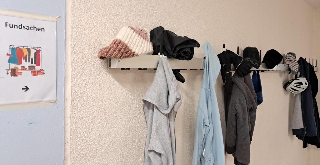 Sollte im Schulalltag mal etwas verloren gegangen sein – keine Panik. Es gibt am SGK drei Orte, an denen verlorenen gegangene Sachen gesammelt werden. Kleidungsstücke (Jacken, Pullis, Mützen, Schals, Fahrradhelme etc.) werden an einer Kleiderleiste auf Ebene 2, gegenüber von Raum 267 gesammelt. Gefundene Schmuckstücke wie Ohrringe, Brillen und Armbänder sowie Schlüssel werden an einer Pinnwand im Sekretariat ausgestellt. Dinge, die in und um die Turnhalle verloren gehen, findet ihr häufig in einer Kiste beim Hausmeister der Turnhalle wieder.
