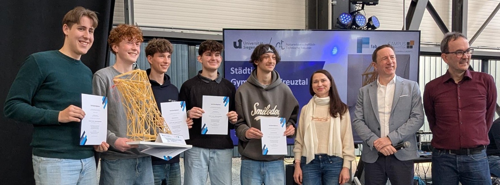 Der Wettbewerb zeigte eindrucksvoll, wie lebendig die Verbindung von Theorie und Praxis sein kann. Die Schülerinnen und Schüler stellten nicht nur ihr technisches Verständnis unter Beweis, sondern stärkten auch Teamgeist, Ausdauer und Problemlösungskompetenz. Mit Veranstaltungen wie diesem Kranbauwettbewerb schlägt die Universität Siegen – so betonte Frau Dr. Barten – eine Brücke zwischen Schule, Universität und Berufswelt. Vielleicht wurde an diesem Tag bei dem einen oder der anderen der Grundstein für ein späteres Studium im Bauingenieurwesen gelegt.